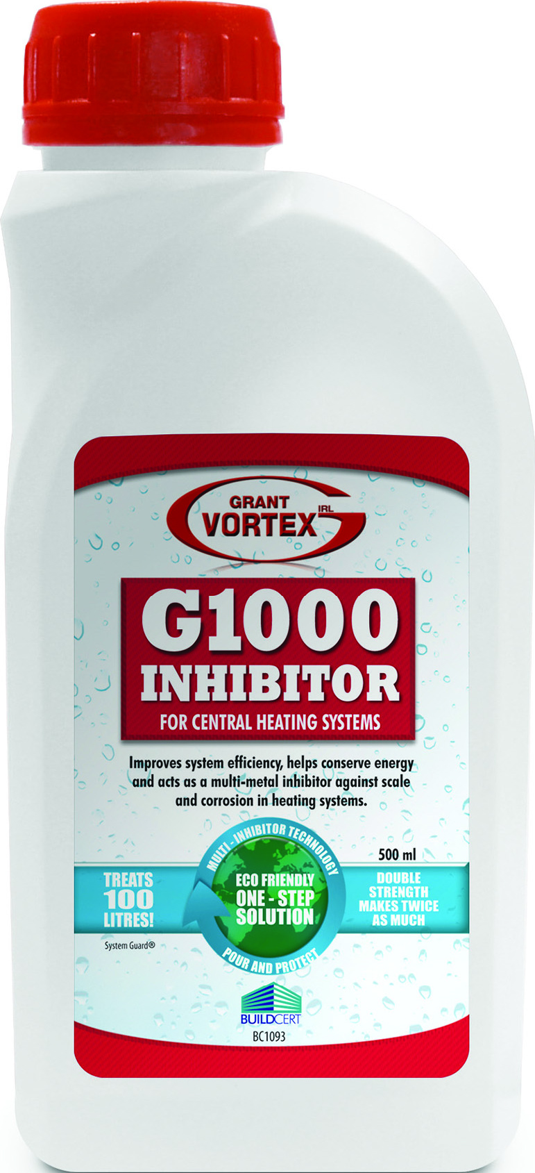 Grant G1000 heating system inhibitor acts as a multi-metal inhibitor against scale corrosion. 500ml per 100 litres of system water in a typical 15kW system.